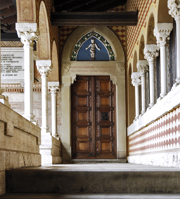 Per quanto riguarda gli apparati decorativi del Castello, la peculiare attitudine di Coppedè a combinare con disinvoltura modelli formali del passato e diretti riferimenti alla cultura artistica contemporanea appare in parte svelata dalla celebre frase da lui pronunciata al termine dei lavori nel cantiere del Mackenzie: “Mi ci sono un po’ gingillato”. Il suo ironico approccio progettuale, come è stato più volte evidenziato, non rappresentava infatti il riflesso di un rigoroso percorso filologico, riscontrabile invece nella rievocazione degli stili del passato che ispirò i principi teorici e operativi di Pugin, Ruskin, Morris e Viollet-le-Duc. Nella ricerca di Coppedè – formatosi nel clima culturale italiano della seconda metà dell’Ottocento, caratterizzato da una diffusa arbitrarietà di interpretazione rispetto ai modelli storici non solo in campo architettonico, ma anche in quelli artistico e letterario – si deve semmai sottolineare la presenza di un gusto per l’assemblaggio e per la libera contaminazione stilistica.