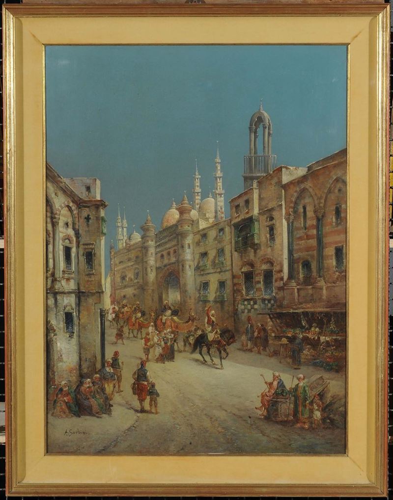 A. Sorbini (XIX-XX) Veduta di cittˆ araba