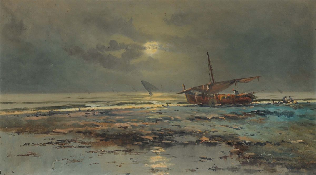 olio su tela, cm 54x96, firma di difficile lettura in basso a sinistra
