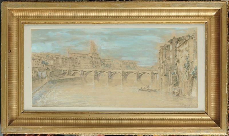Anonimo del XIX secolo Veduta di cittˆ con ponte