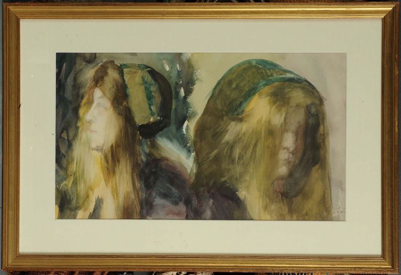 acquarello su carta, cm 22x38, firma di difficile lettura in basso a destra