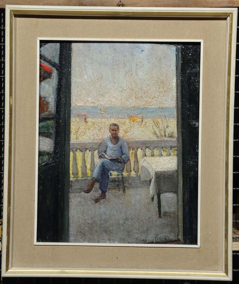 Anonimo del XX secolo Uomo al balcone