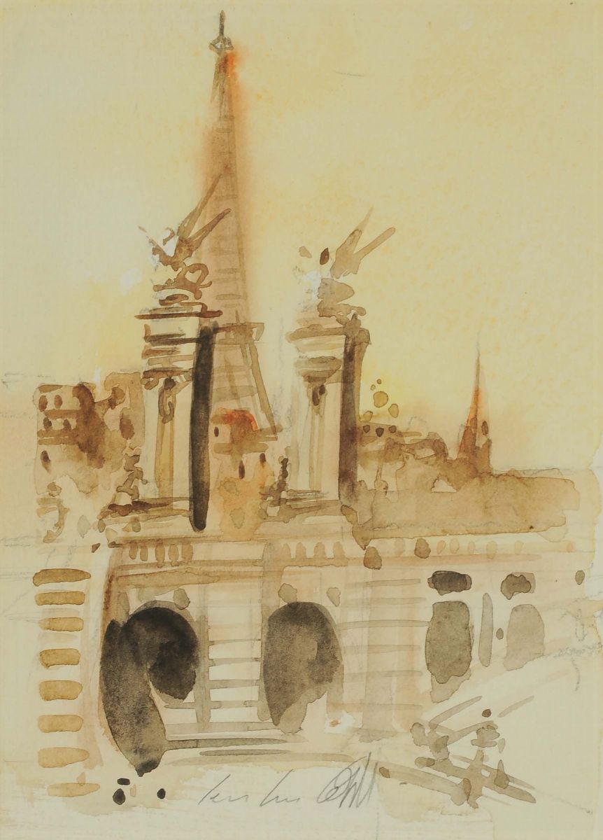 coppia di acquerelli su carta, cm 16,5x12,5 e cm 12,5x17
