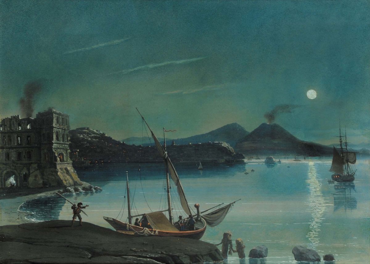 Anonimo Napoletano del XIX secolo Veduta notturna del golfo di Napoli