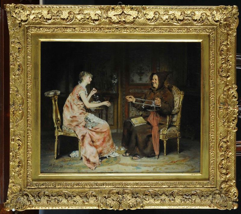 Antonio Salvador Casanova Y Estorach (1847-1896) Fanciulla con frate, 1881