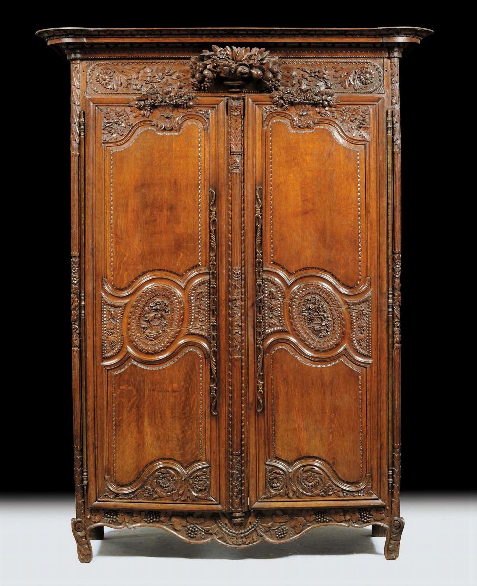 Armadio in noce intagliato a due ante, XVIII secolo secolo