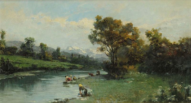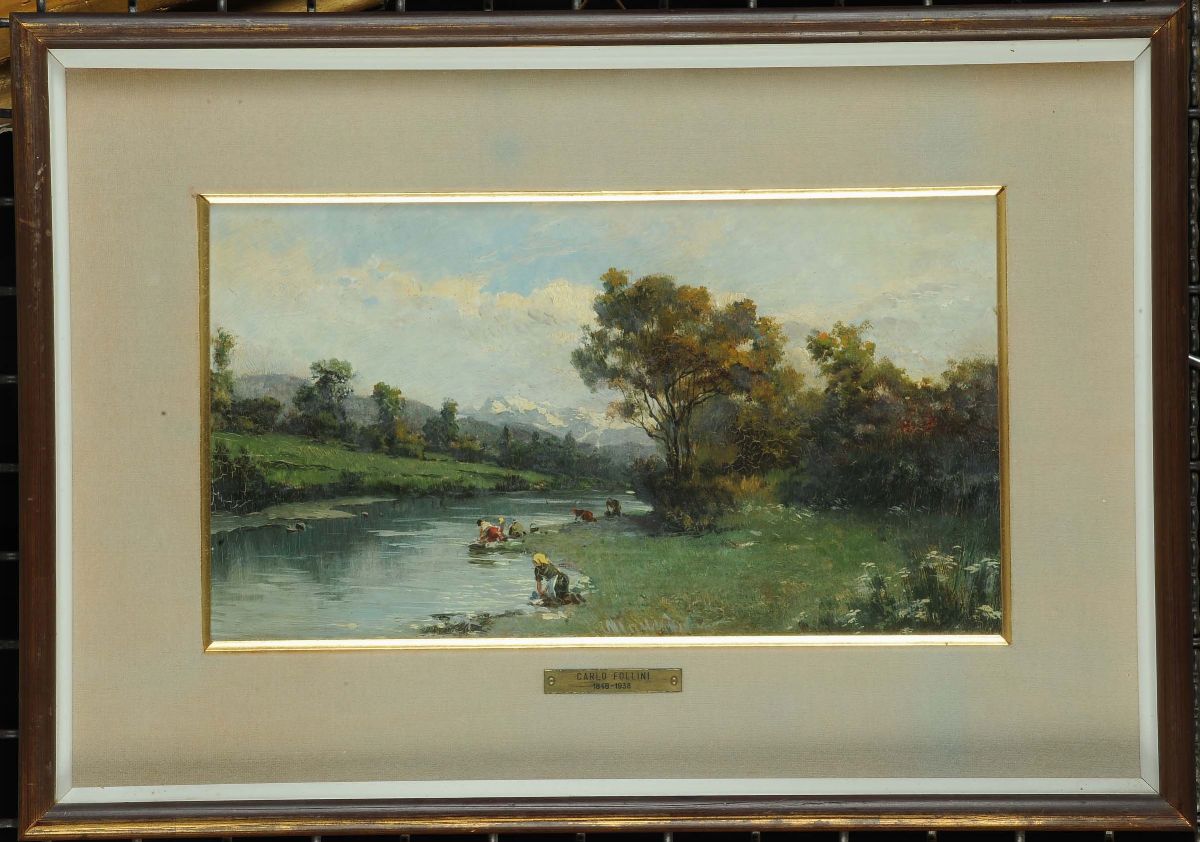 Carlo Follini (1848-1938) Lavandaie al fiume