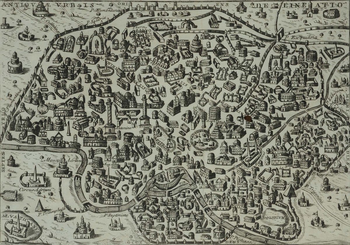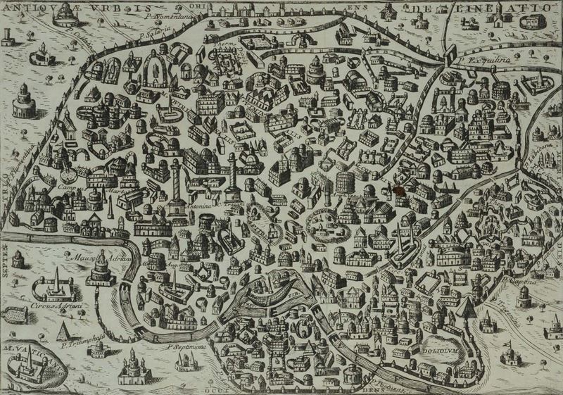 Carta topografica di Roma, incisione del XVI secolo