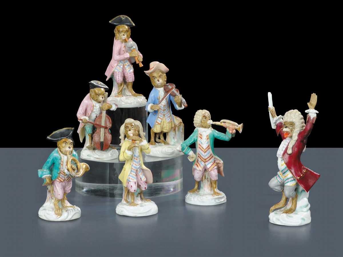 Concerto di scimmiette musicanti in porcellana, Meissen XIX secolo