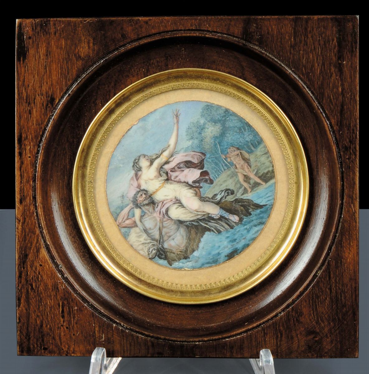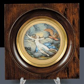 di forma circolare raffiguranti scene mitologiche, entro cornici in legno, diametro cm 7,5