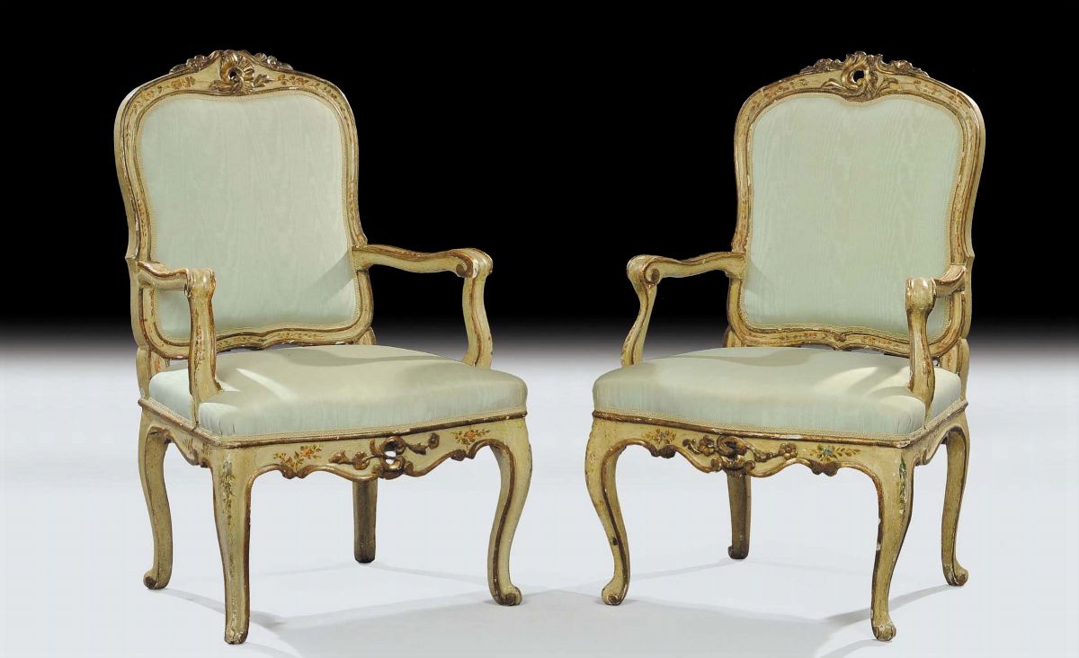 Coppia di poltrone in legno intagliato, Roma XVIII secolo