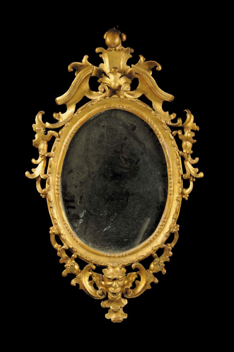 Coppia di specchierine in legno intagliato e dorato, XVIII secolo