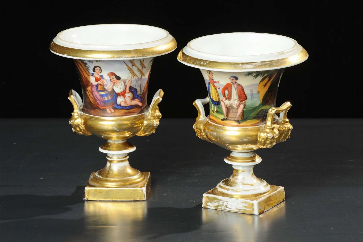 Coppia di vasi Impero in ceramica, XIX secolo