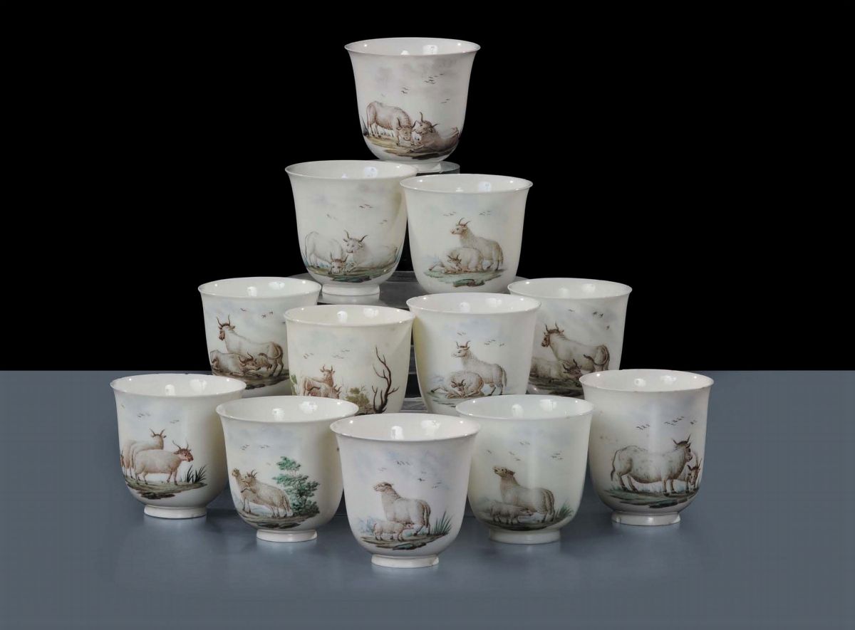 Dodici tazze in porcellana policroma, Napoli Capodimonte metˆ XVIII secolo