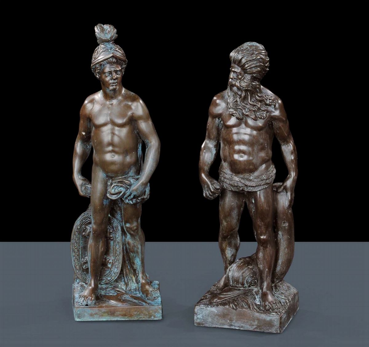 Due figure in bronzo raffiguranti guerrieri (copia da Sansovino), Padova XIX secolo