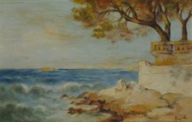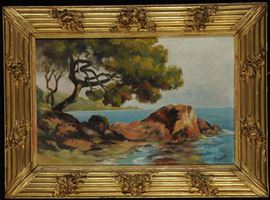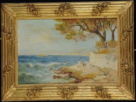 coppi di dipinti ad olio su tela, cm 27x41, entro cornici dorate