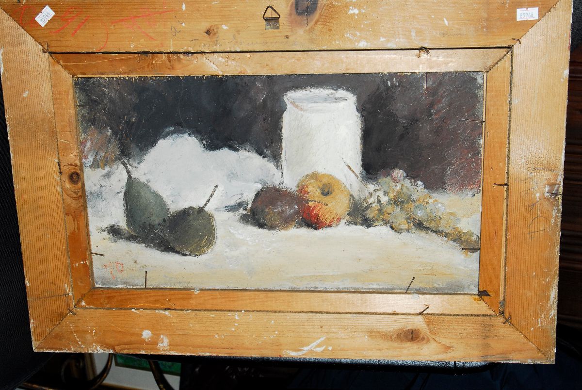 Al verso: Natura morta con fruttaolio su tavola, cm 25x45