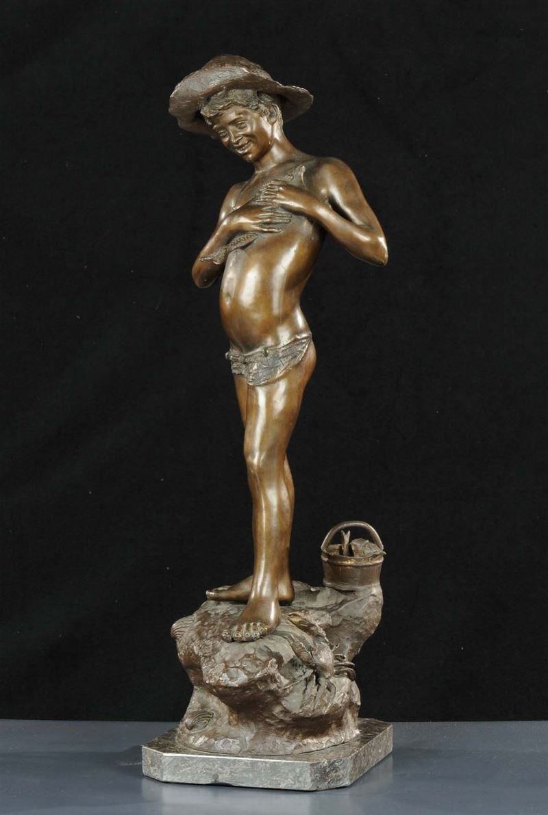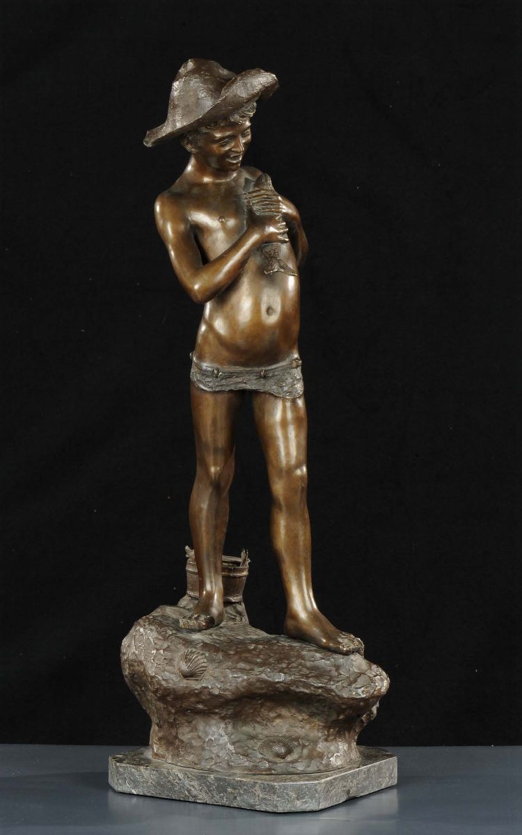 scultura in bronzo su base in marmo, altezza cm 76, firma incussa alla base