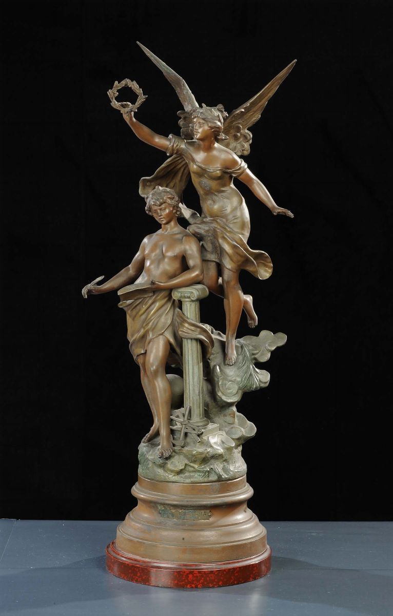 Gruppo in antimonio raffigurante musa ispiratrice, inizio XX secolo
