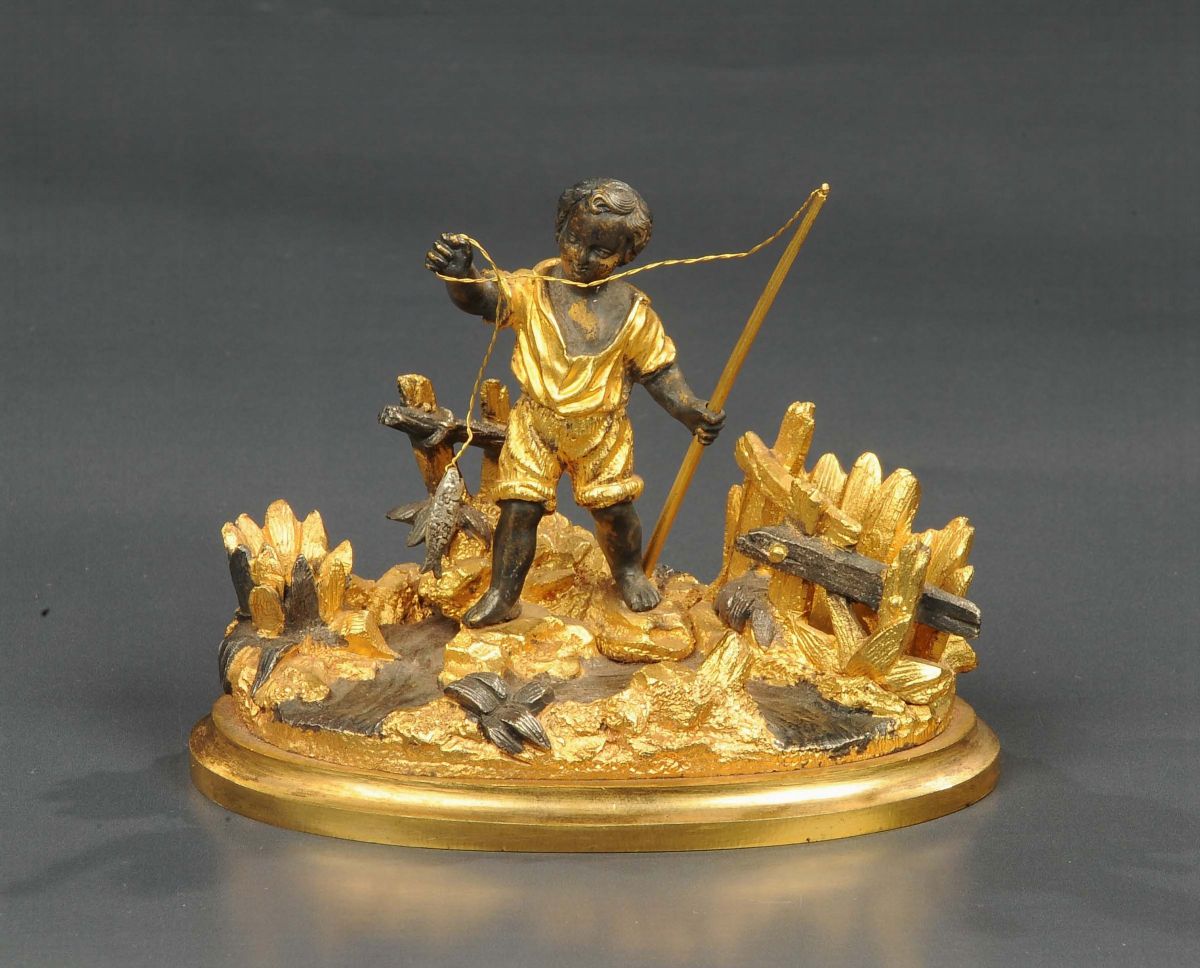 Gruppo in bronzo dorato e brunito, XIX secolo