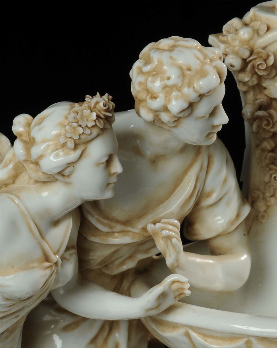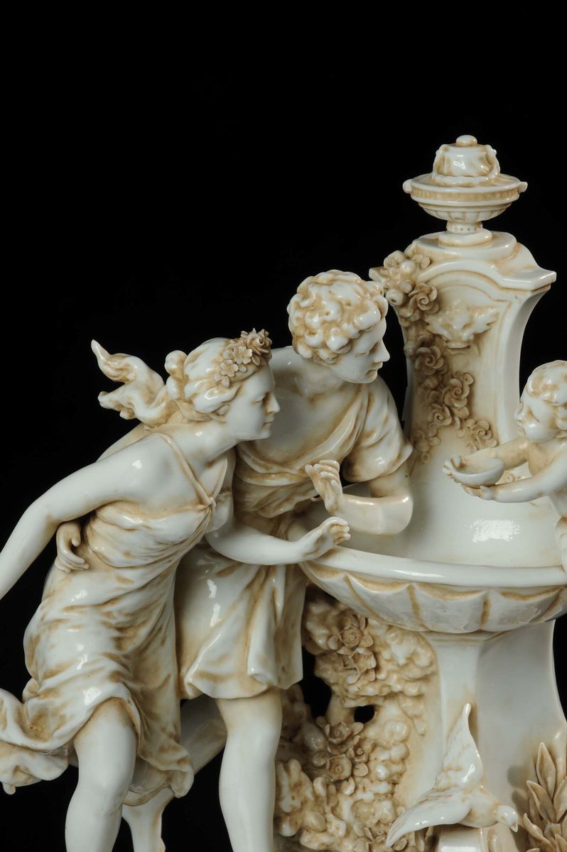 Gruppo in porcellana raffigurante coppia con putto, XIX secolo