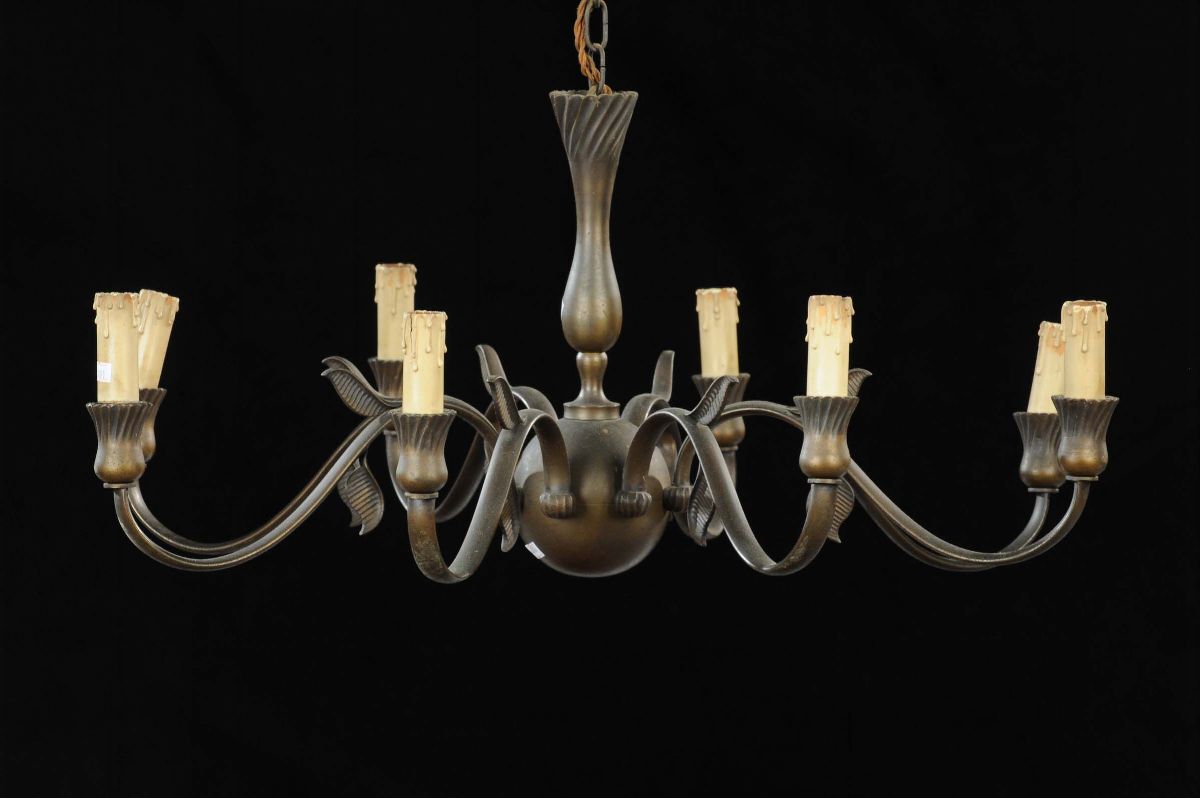 Lampadario in metallo a otto luci