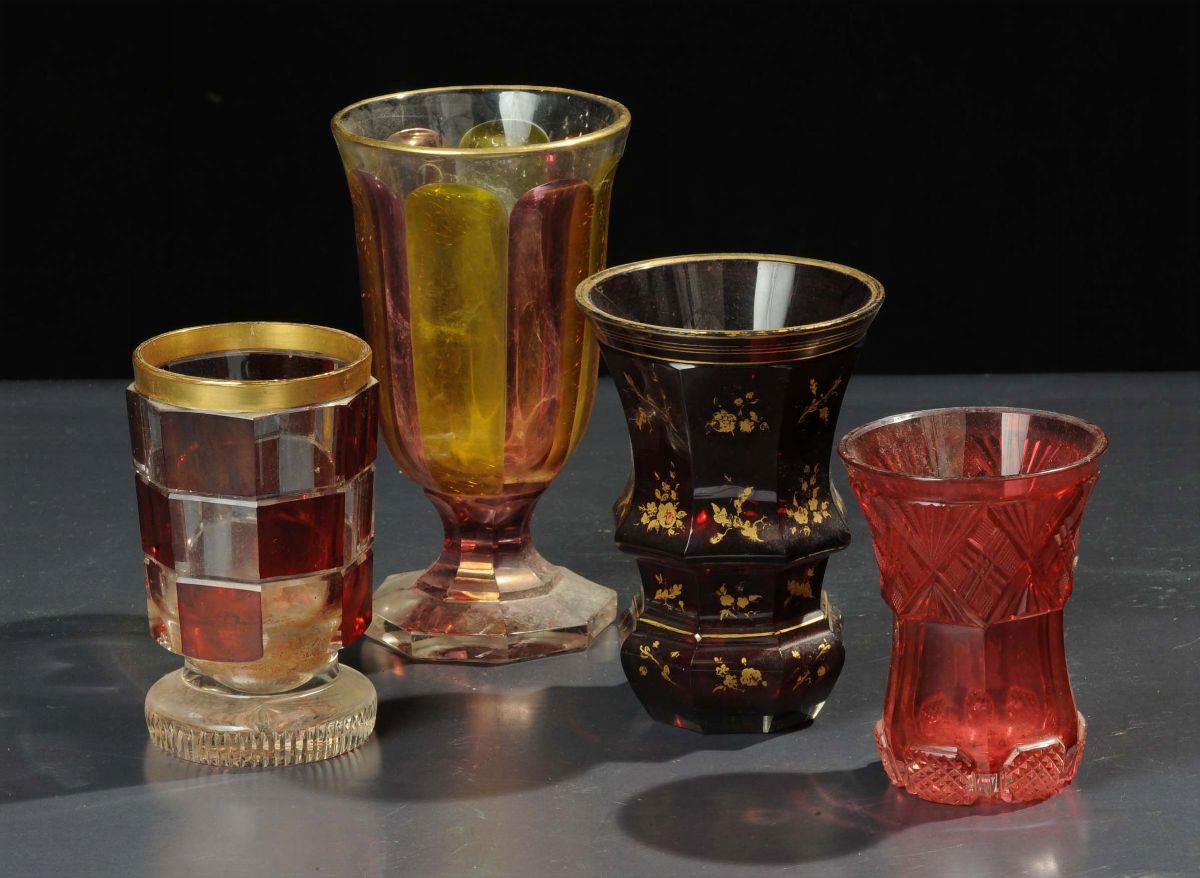 Lotto di quattro bicchieri in vetro di Boemia