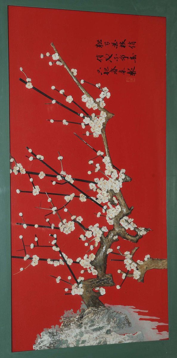 Pannello con ramo fiorito sotto vetro, Cina XIX secolo