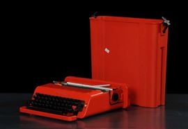 Porta vassoio in bamb e macchina da scrivere Olivetti, XX secolo