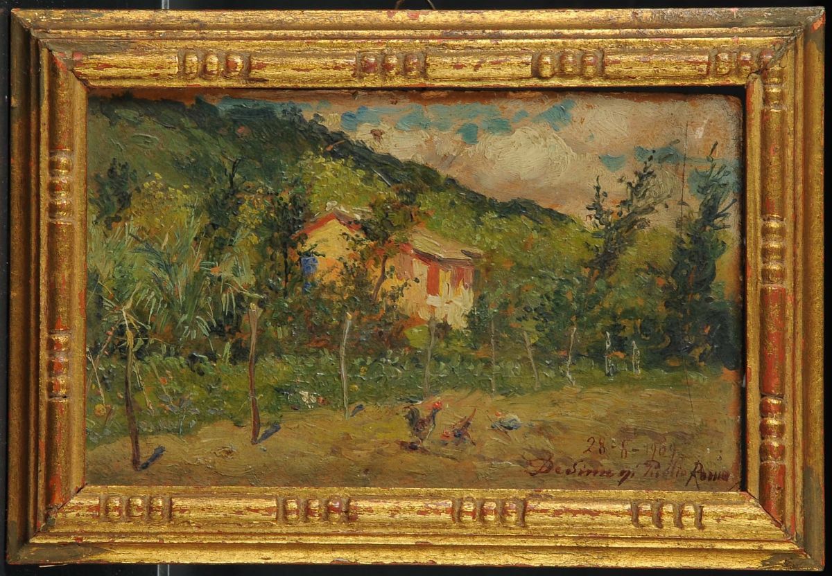 Publio De Simoni (1872-1948) Paesaggio agreste con pollaio, 1909