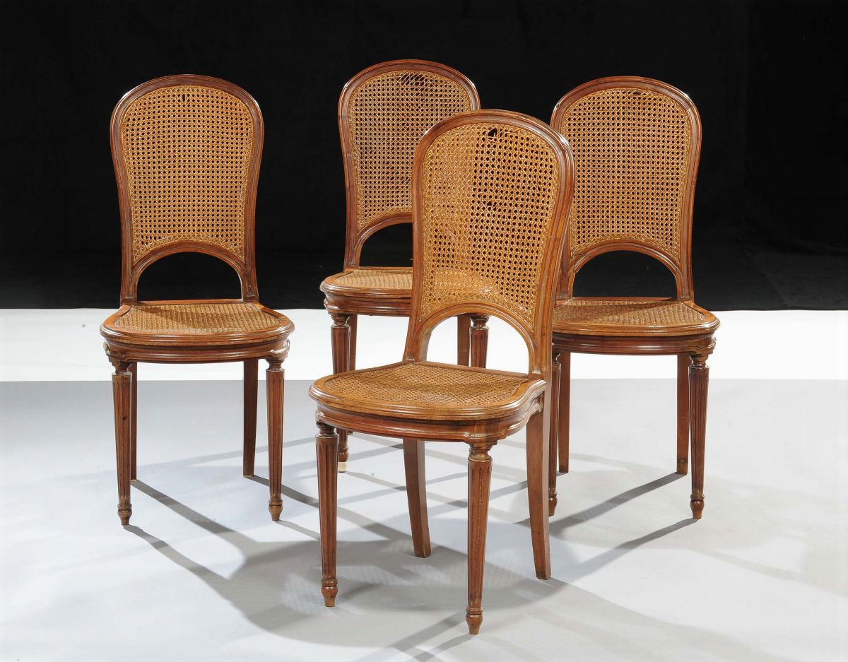 Quattro sedie con seduta e schienale in cannetŽ, fine XIX secolo