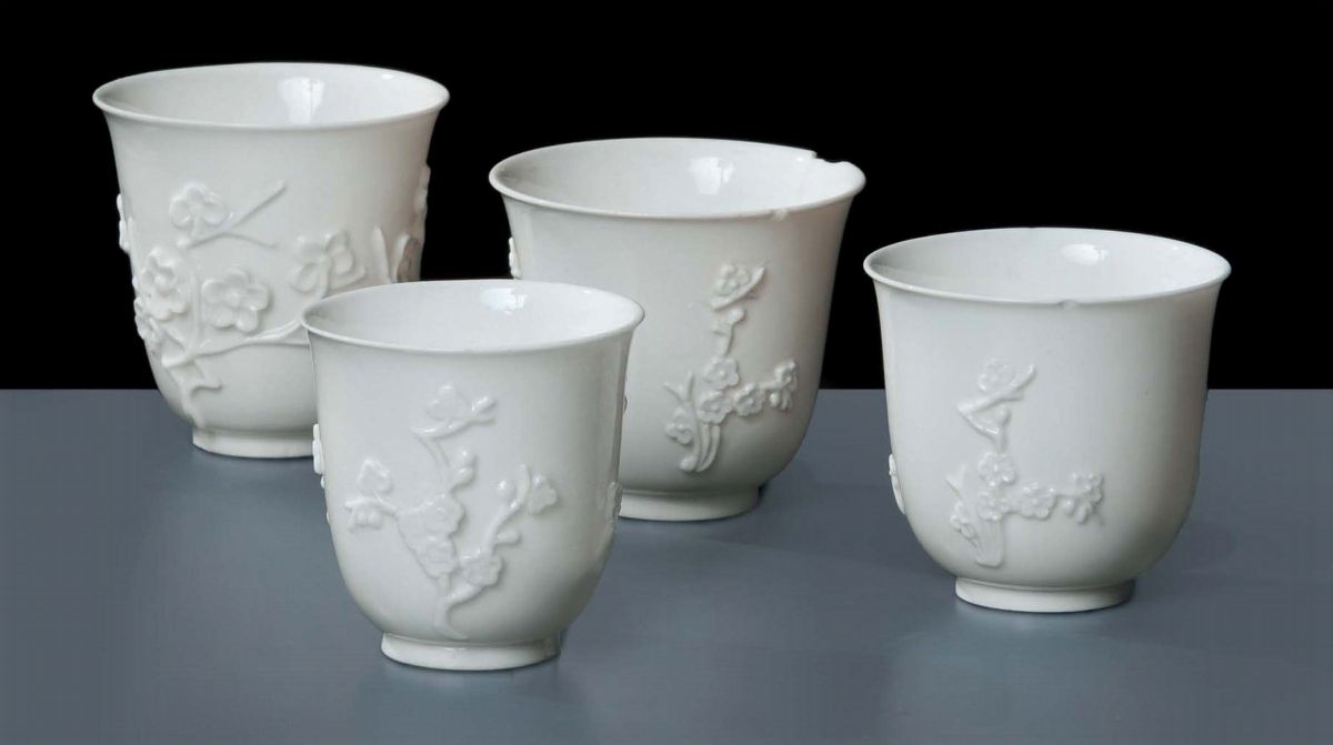 Quattro tazze in porcellana bianca, Napoli Capodimonte metˆ XVIII secolo
