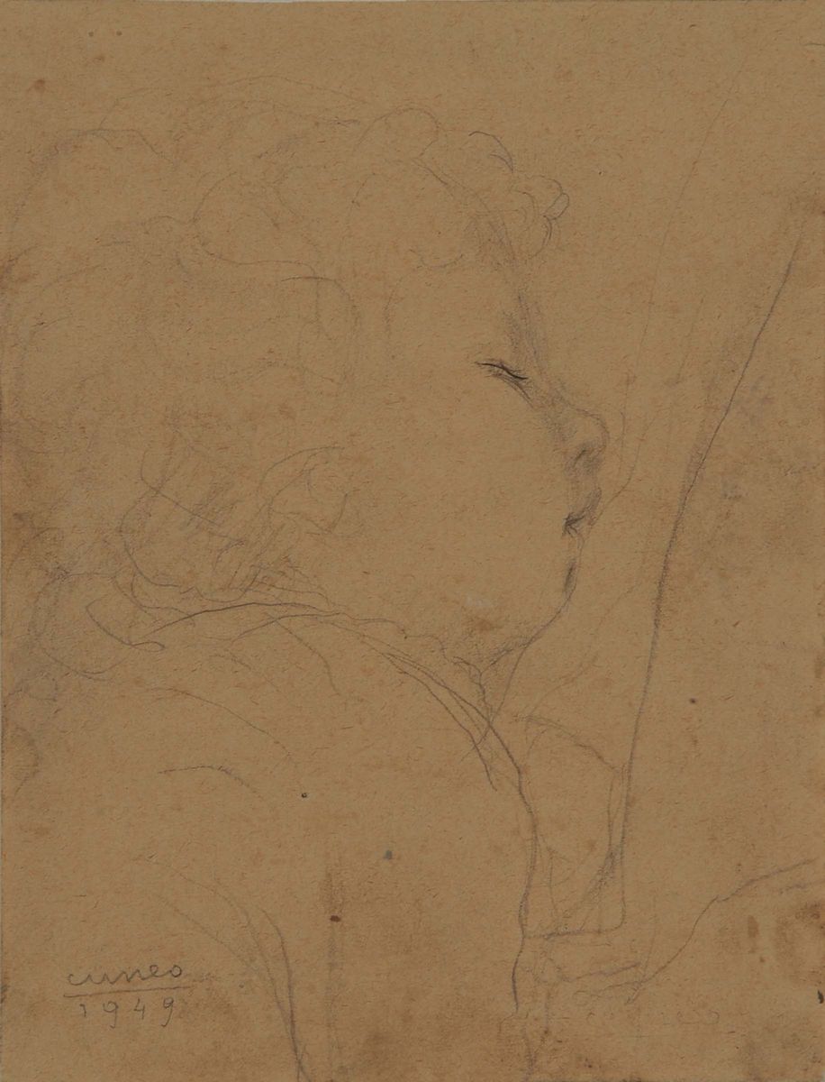 disegno a matita su carta, cm 15,5x12, firmato e datato in basso a sinistra