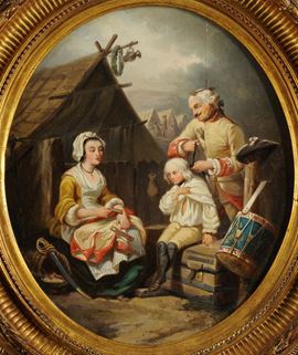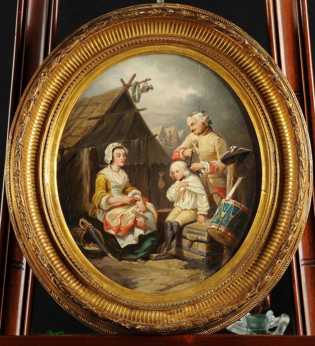 olio su tavola ovale, cm 27x23,5, entro cornice intagliata e dorata