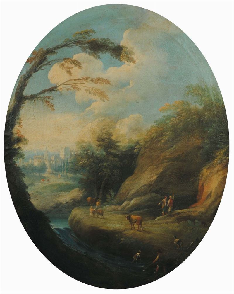 Scuola Genovese del XVIII secolo Paesaggi ed armenti ed architetture