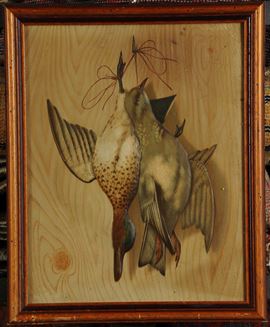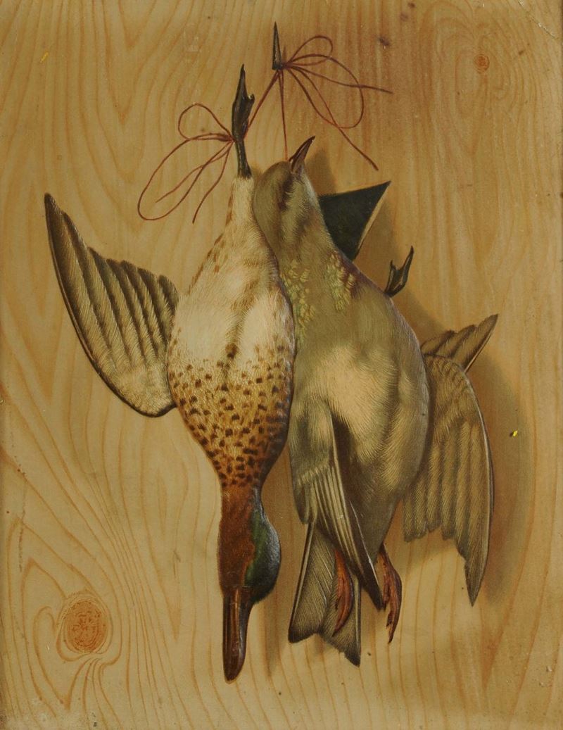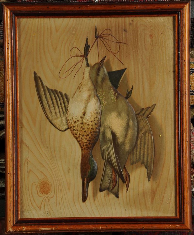 Stampa a rilievo raffigurante natura morta con cacciagione