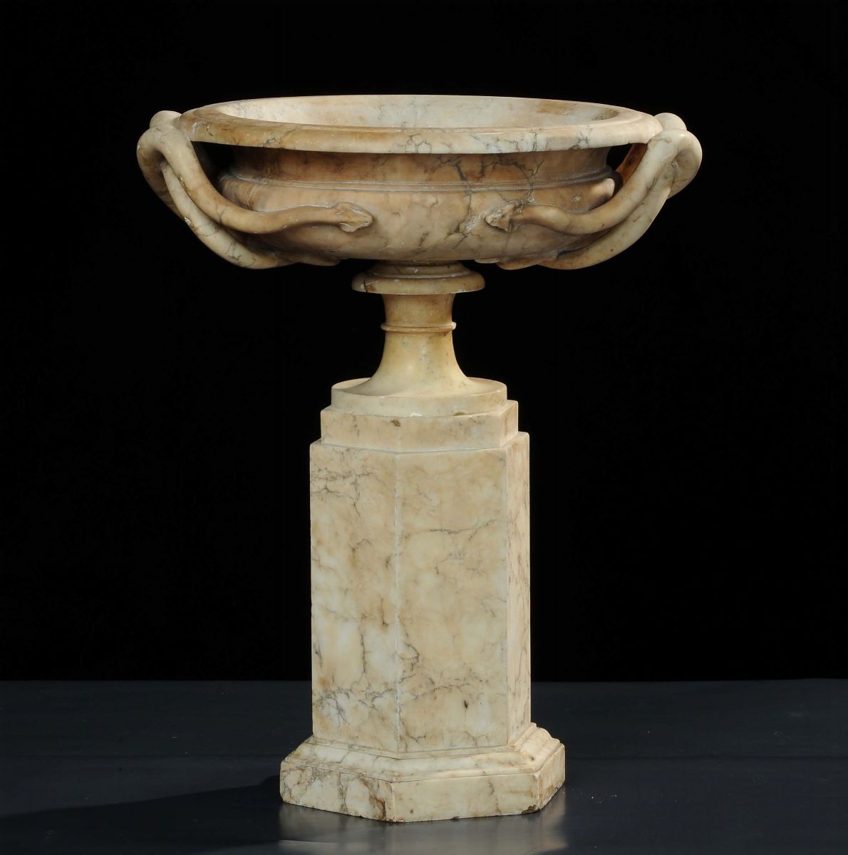 Vasca in alabastro con manici a foggia di serpi