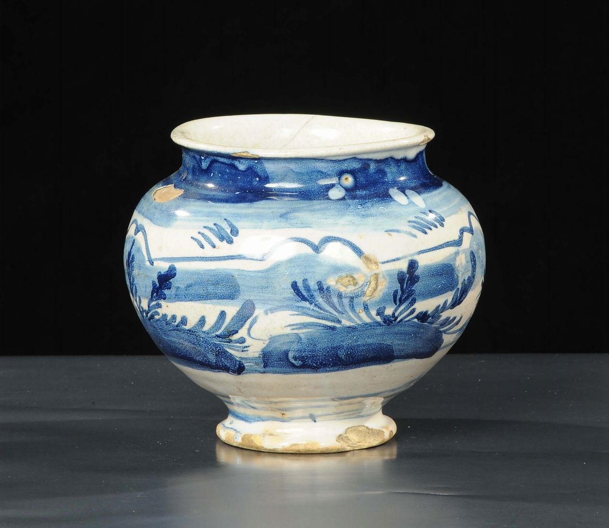 Vaso in maiolica a motivo vegetale, Savona XIX secolo