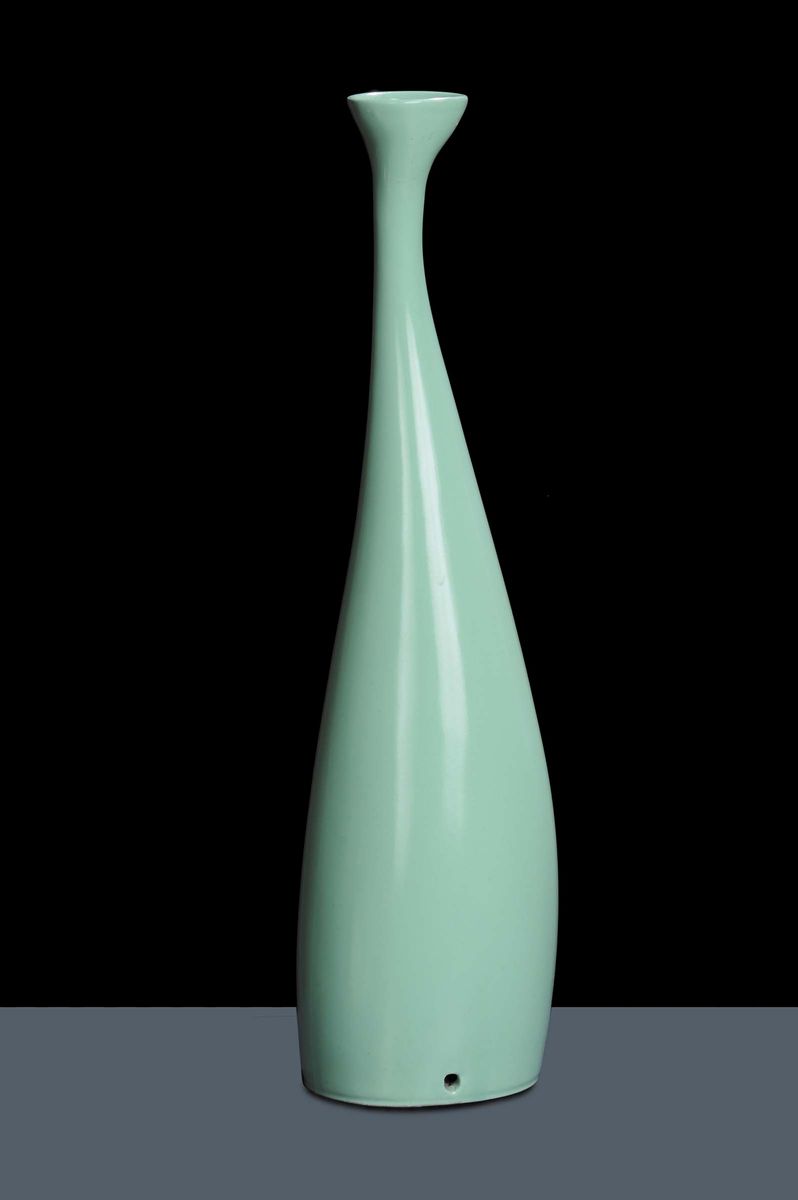 terraglia forte modellata a colaggio e smaltata in verde chiaro. Marchio della manifattura sotto la base. 1954, altezza cm 49,5