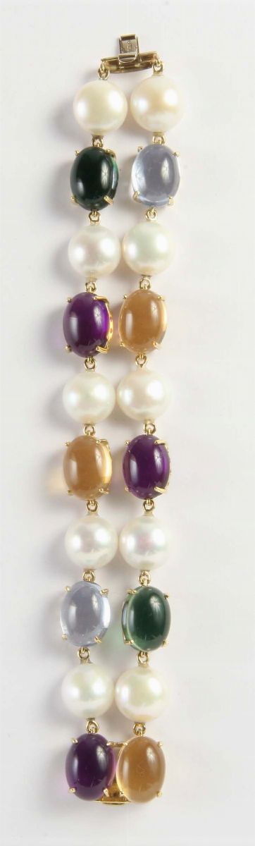 Bracciale con quarzi, ametiste, tormaline e perle