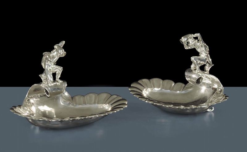 Coppia di cesti a conchiglia in argento, XIX secolo