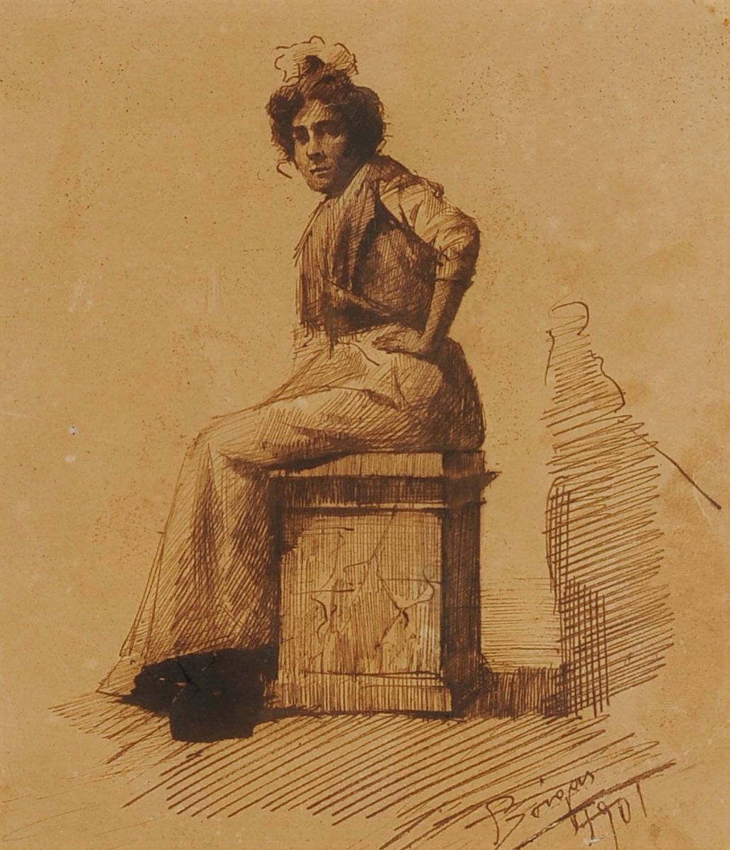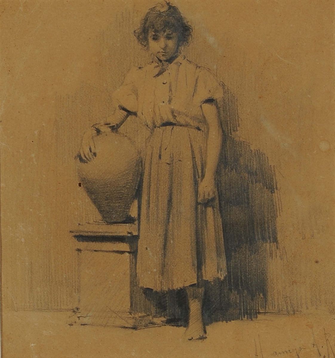 Anonimo del XX secolo Paesaggio e due ritratti, 1901