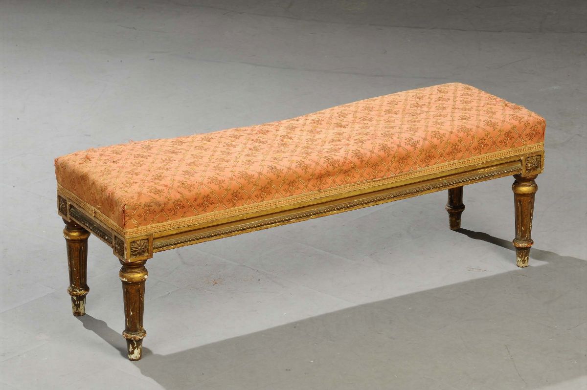 Antica sedia panchetto in stile Luigi XVI in legno intagliato e dorato, fine XIX secolo