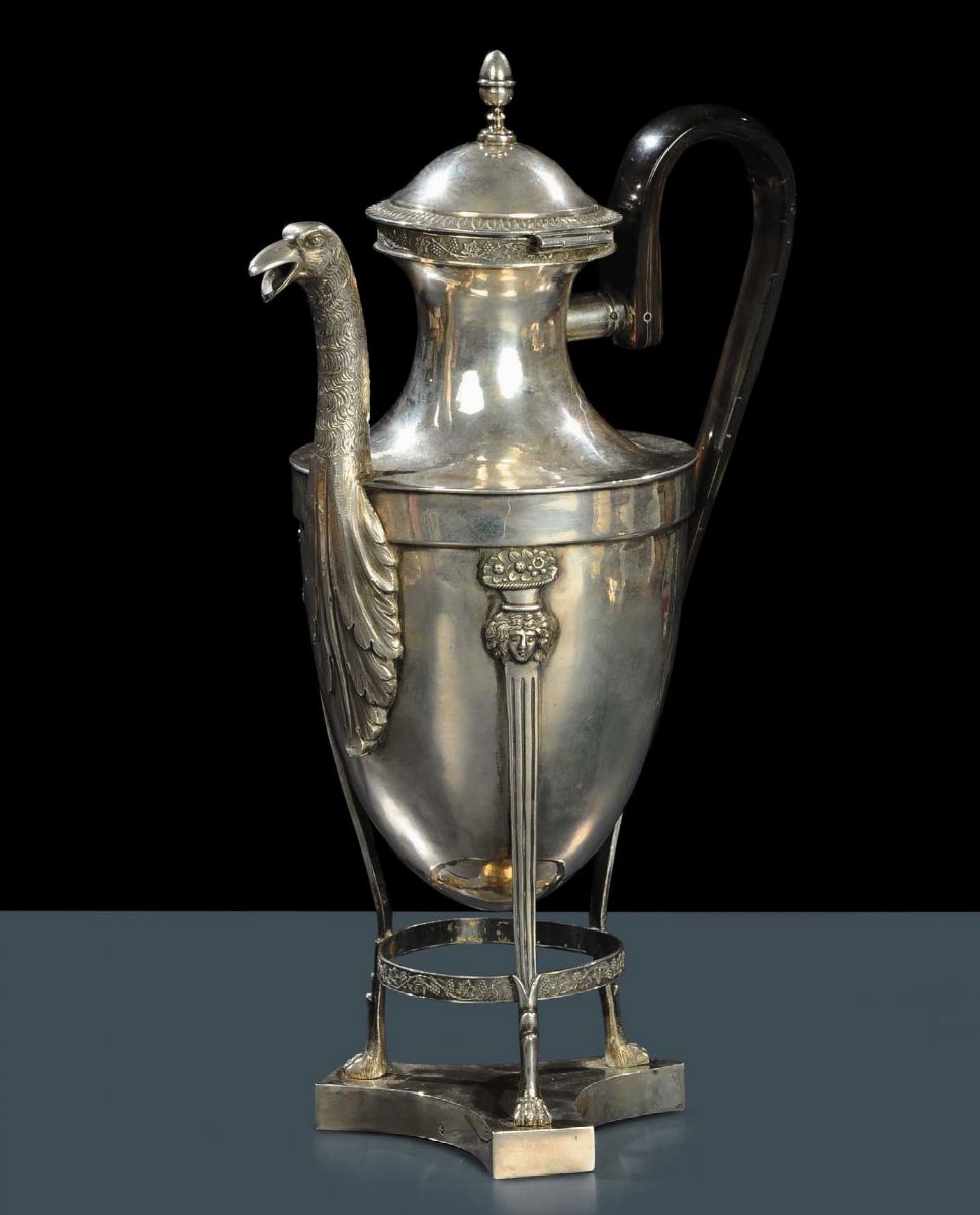 Caffettiera Impero in argento Roma, XIX secolo