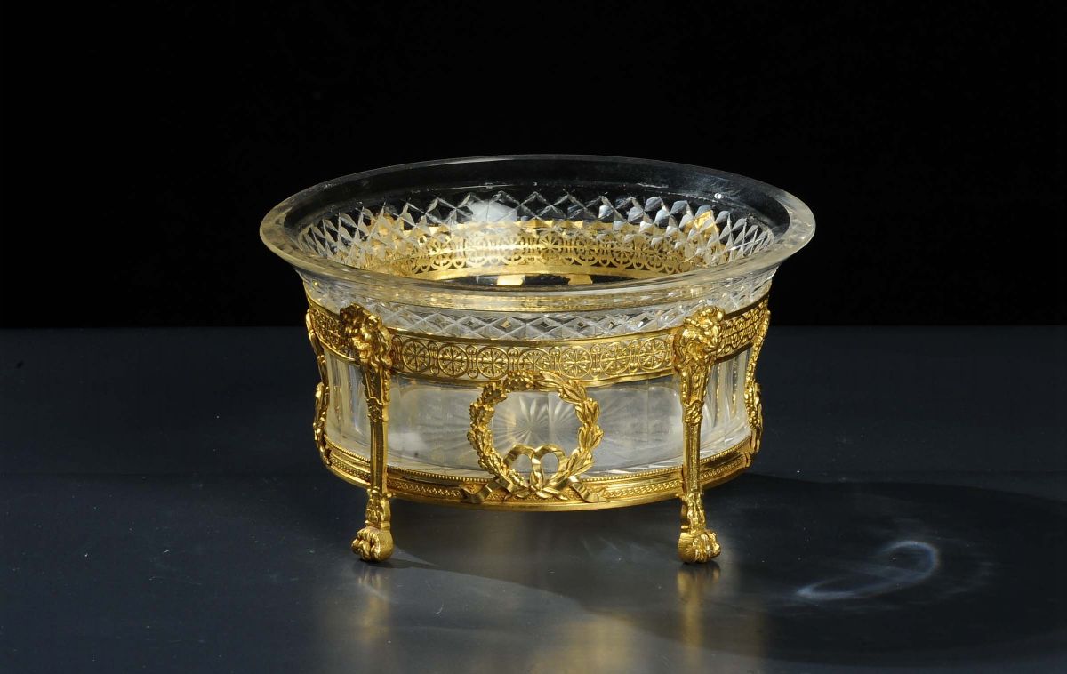 Centrotavola in bronzo dorato e cristallo, XIX secolo