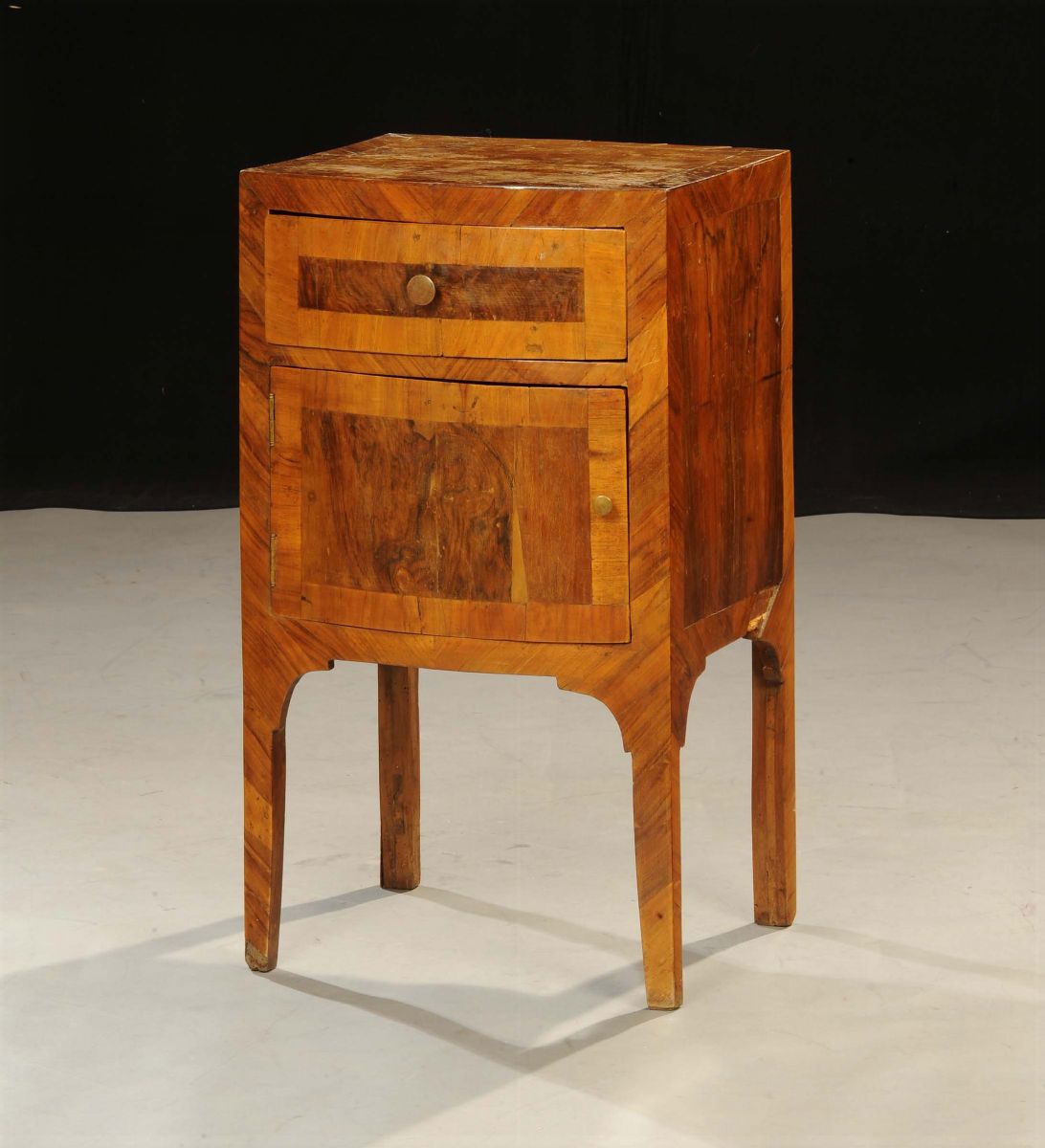 Comodino lastronato ad un'anta ed un cassetto, XX secolo
