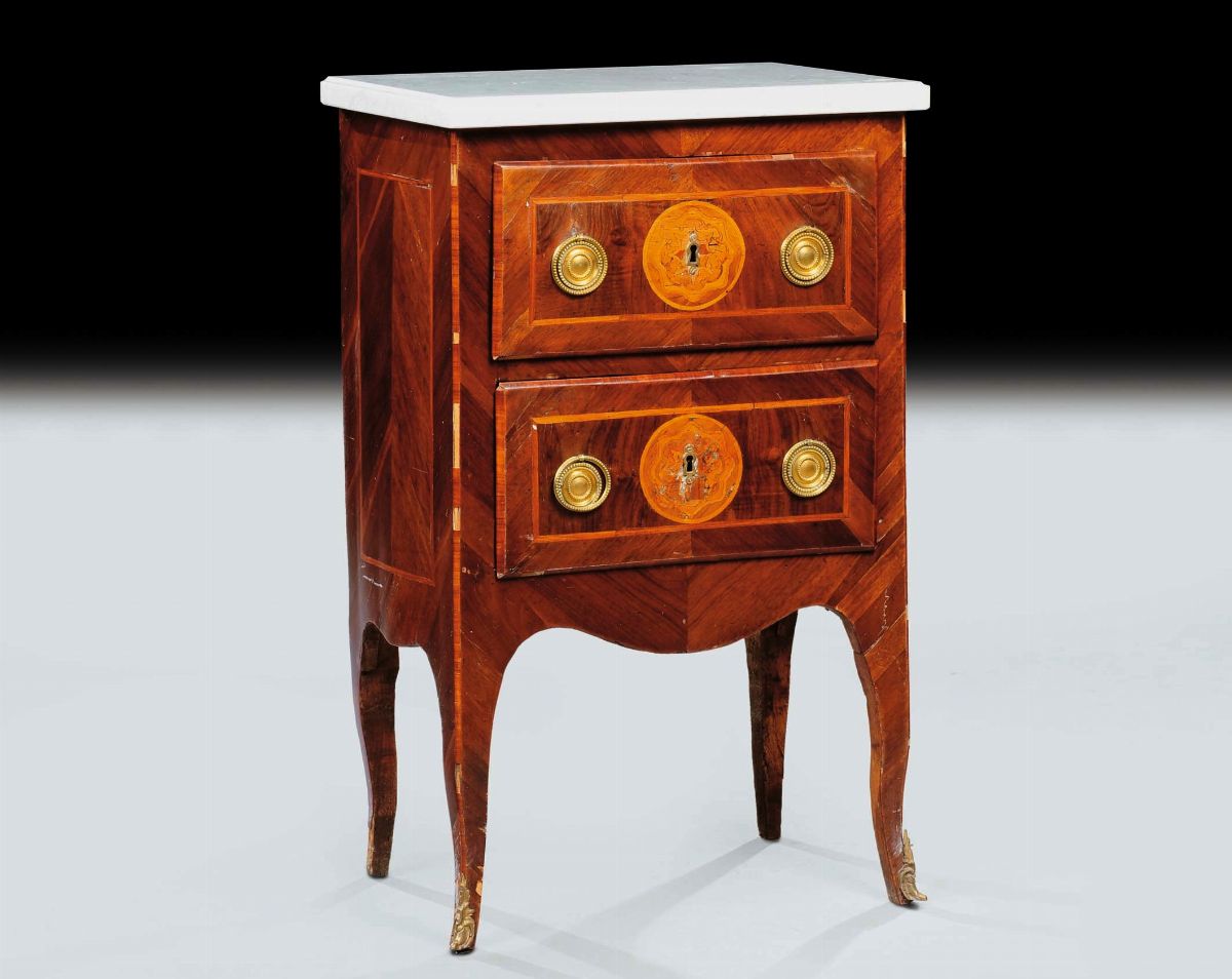 due cassetti sul fronte e piano in marmo bianco, cm 54x36x87