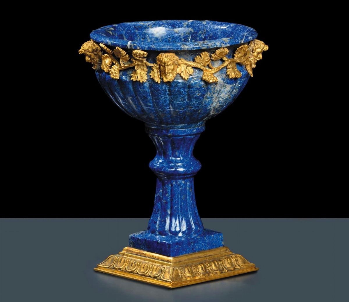 base in bronzo dorato, fascia con teste di Bacco, altezza cm 23