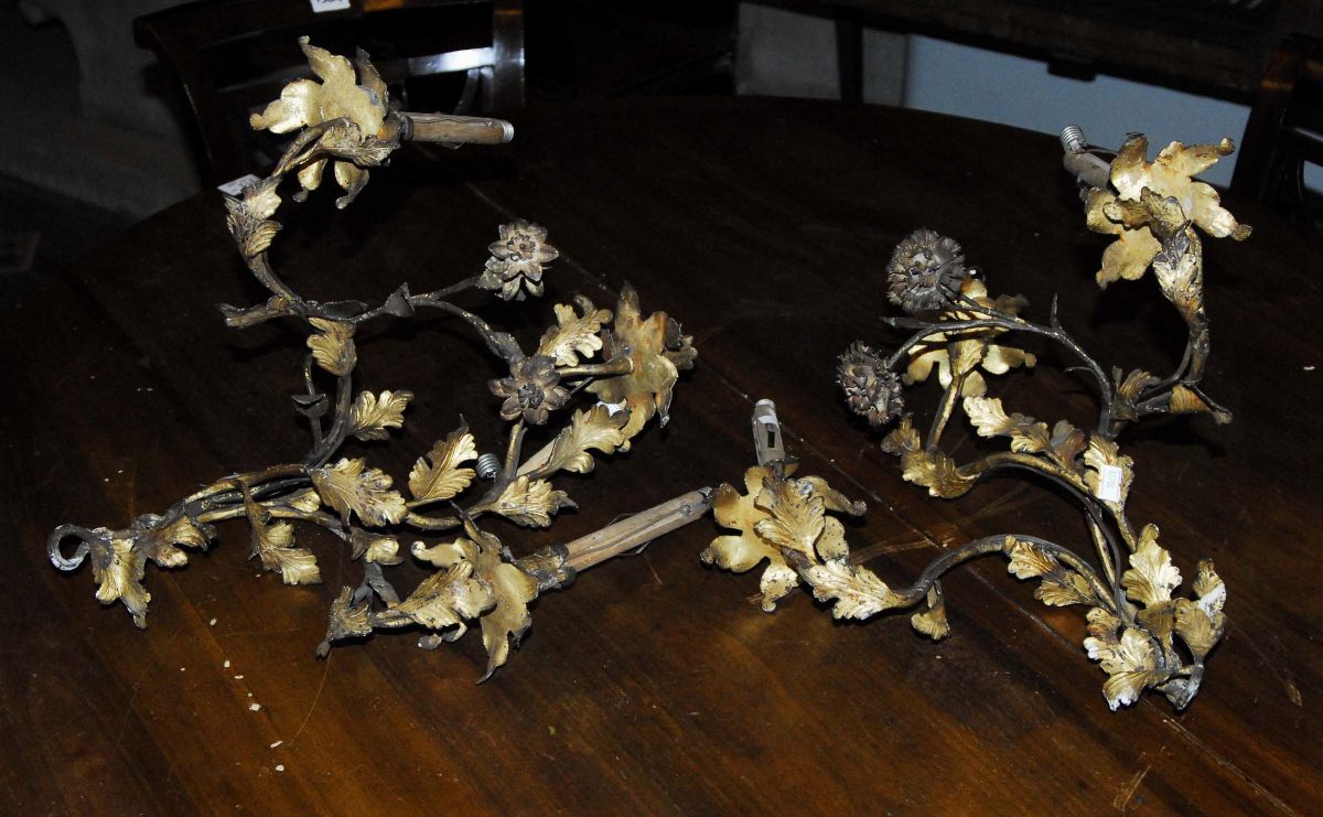 Coppia di appliques a tre luci in ferro dorato, Genova XVIII secolo