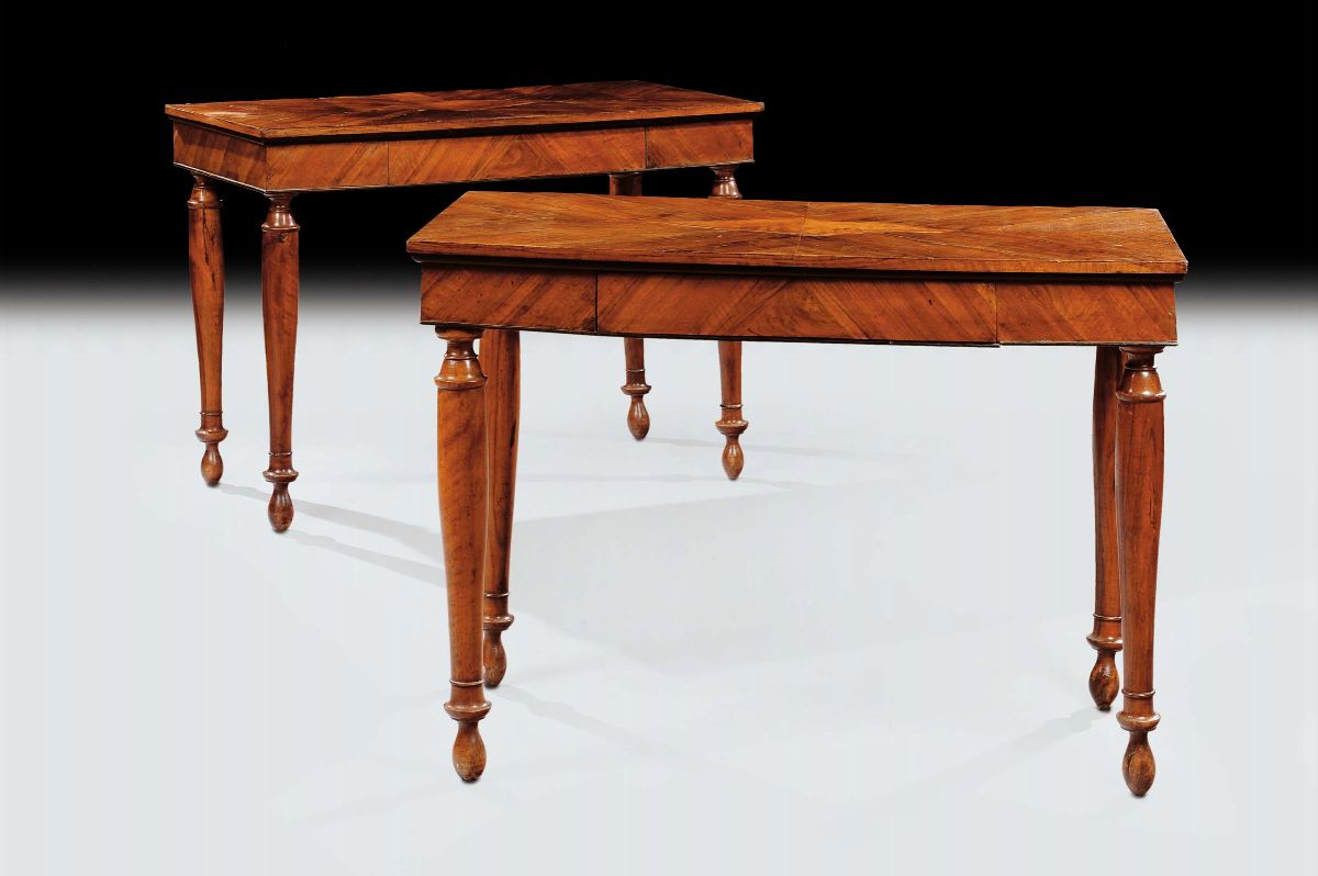 Coppia di console parzialmente lastronate in noce, XIX secolo